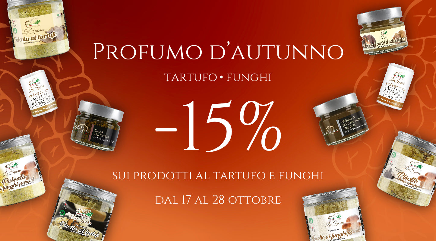 Vivi la magia dell’autunno con la collezione Profumo d’autunno di Tartufi La Spora. Una selezione esclusiva di prodotti al tartufo e ai funghi, pensata per esaltare i sapori autentici e raffinati della stagione.