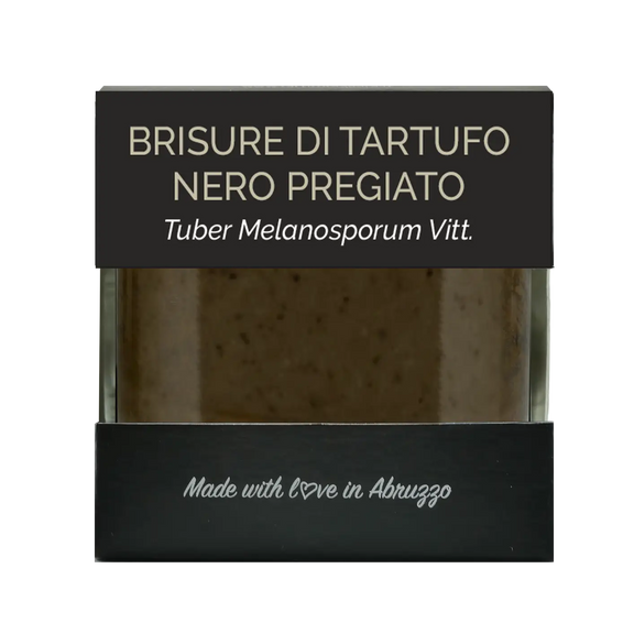 Ingredienti: tartufo nero pregiato (Tuber Melanosporum Vitt.) provenienza Italia 90%, olio di oliva, sale, aromi naturali.