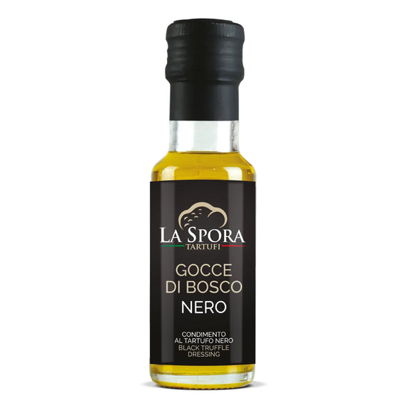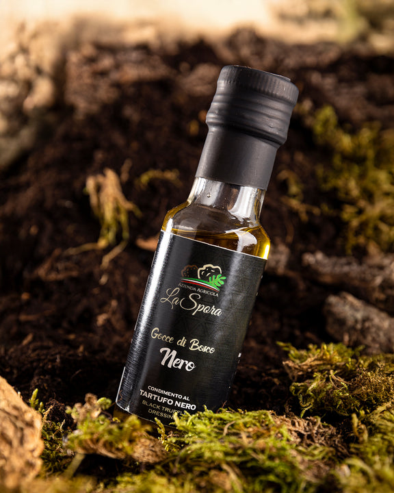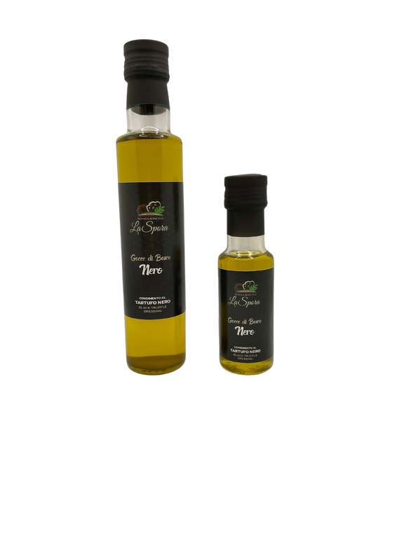Dressing auf Basis von extra nativem Olivenöl, aromatisiert mit schwarzem Trüffel.