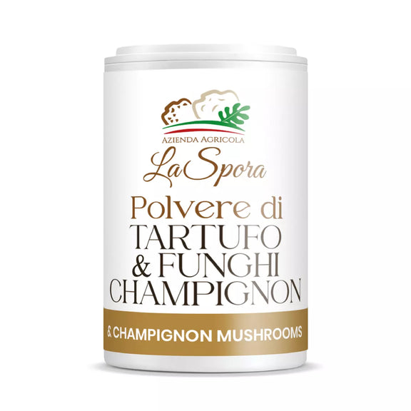 - Polvere di tartufo e funghi champignon 10g: facile e veloce da utilizzare per dare un pizzico di brio ad antipasti, primi piatti, contorni, secondi piatti e dessert. Ingredienti: Polvere di funghi champignon (Agaricus Bisporus) provenienza Italia 56%, farina di riso venere, tartufo estivo disidratato (Tuber Aestivum Vitt.) 2%, aromi naturali.