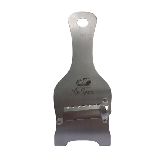 - Affettatartufi in acciaio inox: con lama ondulata per un affilatura che dura nel tempo. Lama regolabile in modo da scegliere lo spessore che si preferisce.