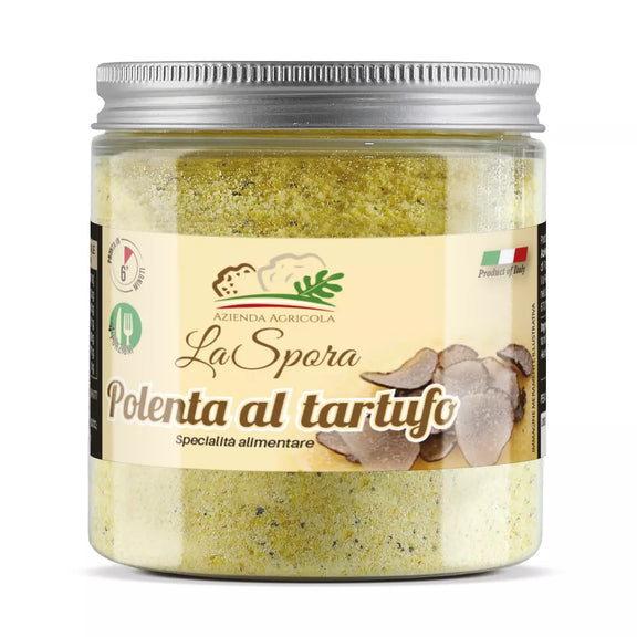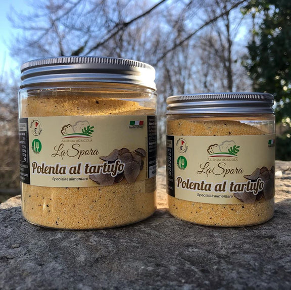 Ingredienti: Farina di mais 95%, tartufo estivo disidratato (Tuber Aestivum Vitt.) 3%, aromi naturali.